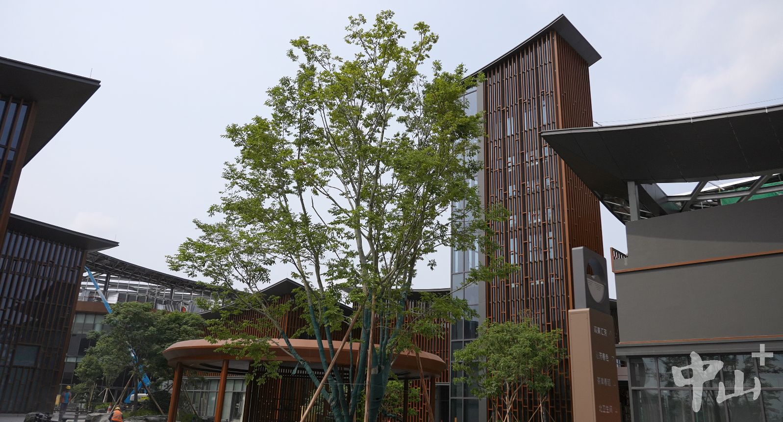 28日上午,中山服務(wù)區(qū)西區(qū)施工現(xiàn)場,機器設(shè)備作業(yè)聲此起彼伏,工人們正在進行屋頂鋼結(jié)構(gòu)安裝。服務(wù)區(qū)內(nèi)18棟運營建筑主體已全部封頂,管線鋪設(shè)、景觀營造同步推進,嶺南水鄉(xiāng)風(fēng)貌初顯。