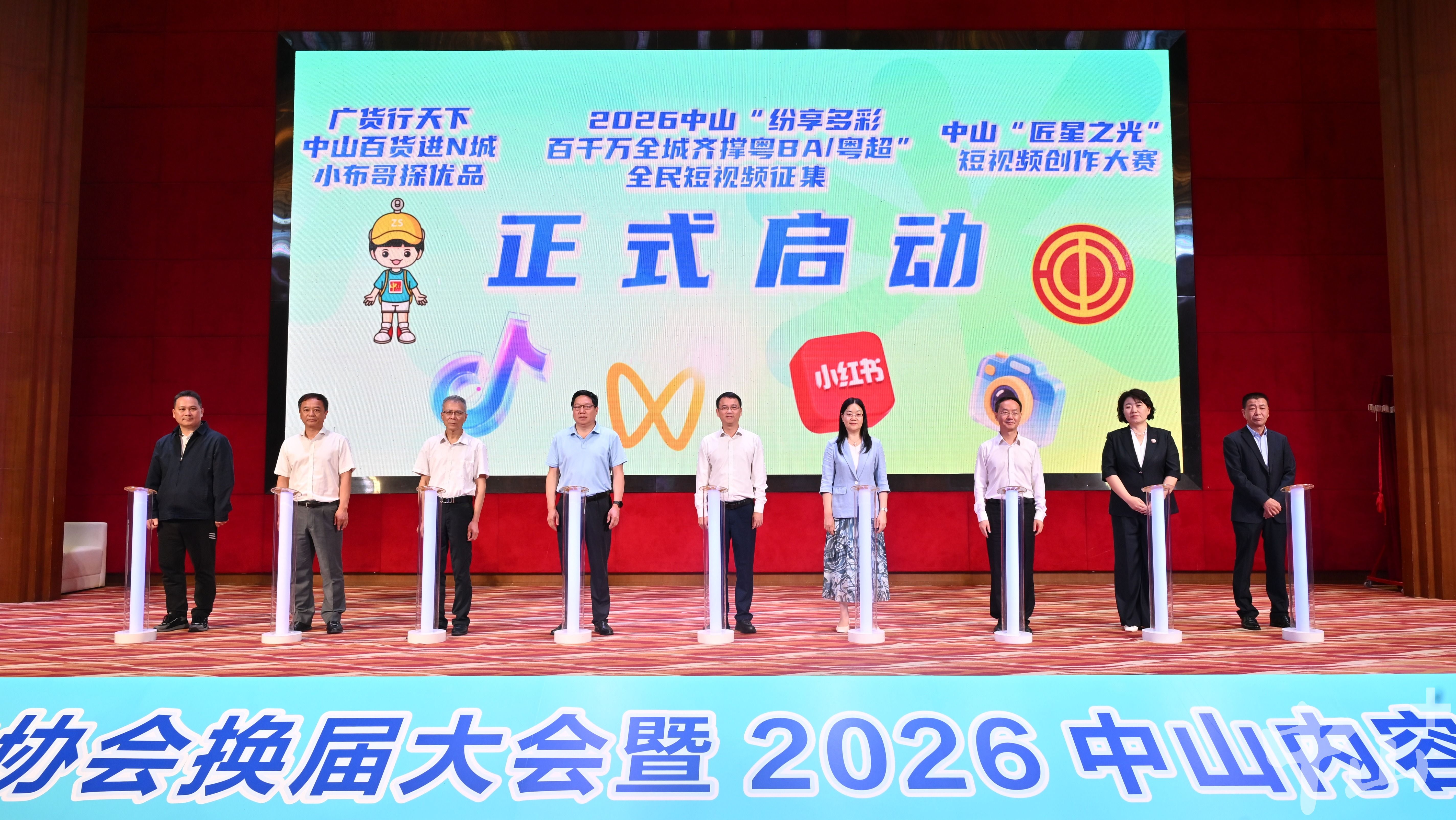 換屆大會后,2026中山內容創(chuàng)作者嘉年華接續(xù)啟幕,現場環(huán)節(jié)緊湊、亮點紛呈。活動現場啟動了“匠星之光”短視頻創(chuàng)作大賽、“廣貨行天下?中山百貨進N城,小布哥探優(yōu)品”“紛享多彩百千萬,全城齊撐粵BA/粵超全民短視頻征集”三大主題創(chuàng)作活動。