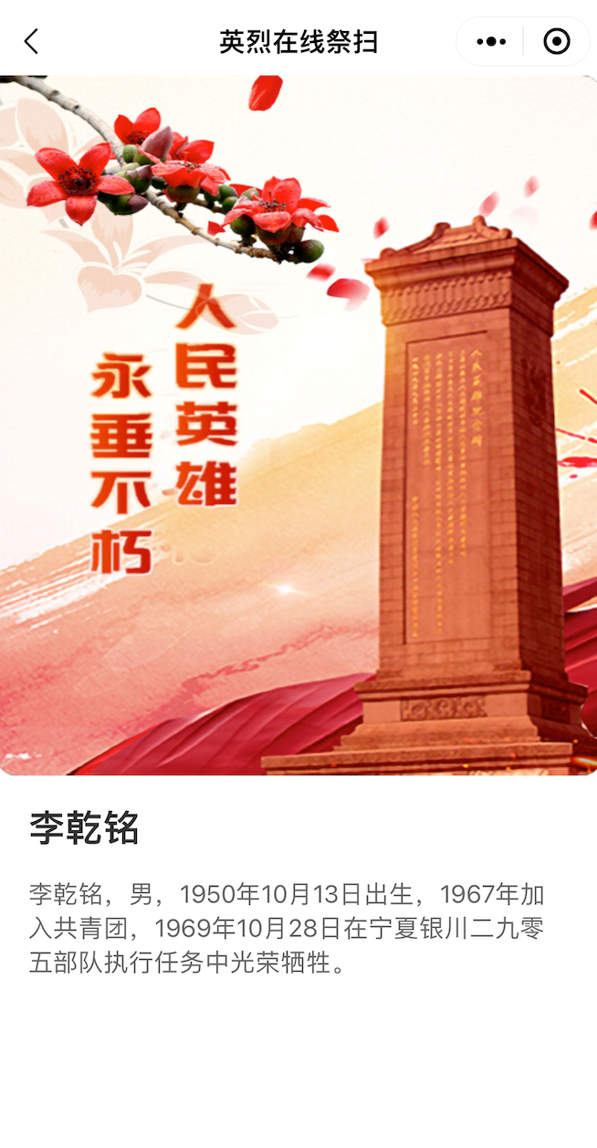 查看英烈名錄,點擊英烈姓名進(jìn)行祭掃