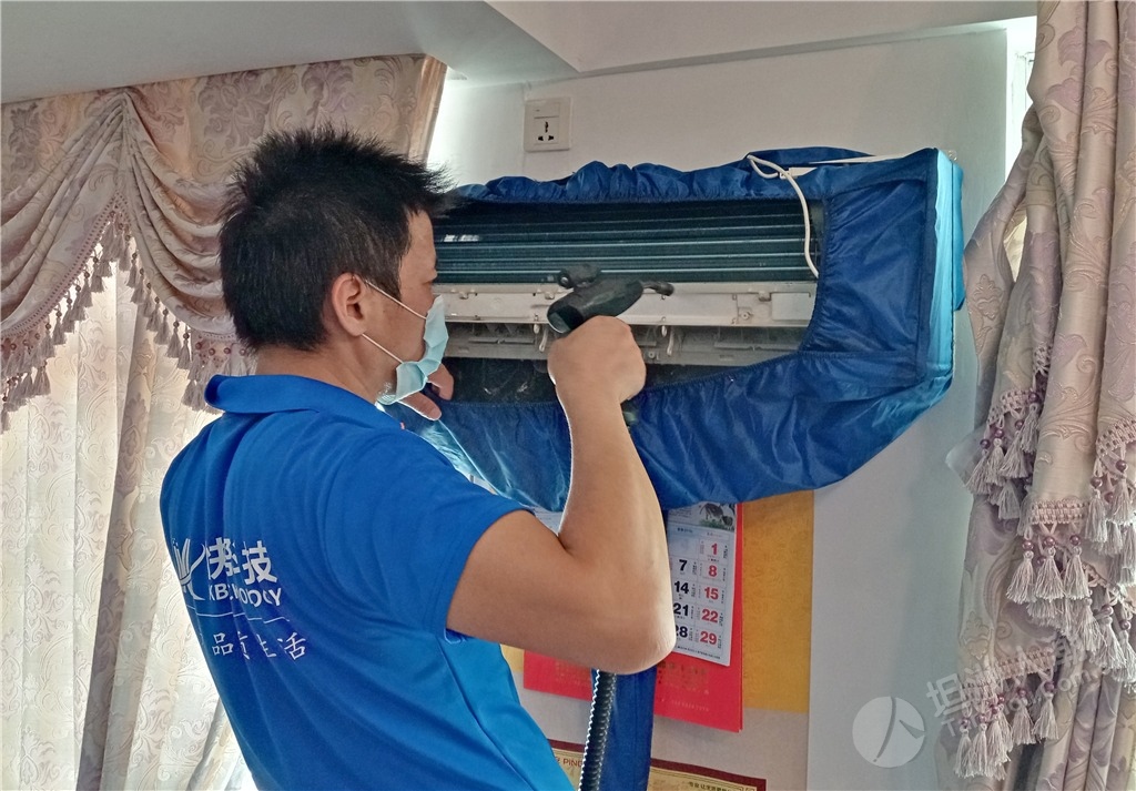 上午9時(shí)許,20名志愿者如約而至,來到坦洲鎮(zhèn)退役軍人服務(wù)中心,天空雖然下起了陣雨,卻絲毫沒有阻擋他們的服務(wù)熱情。志愿者們按照預(yù)約名單,合理分工,有序入戶優(yōu)撫對象家中,依次進(jìn)行空調(diào)電路檢測、制冷功能運(yùn)轉(zhuǎn)試行、內(nèi)置空調(diào)機(jī)表層清潔、過濾網(wǎng)(換熱器)清洗等工作環(huán)節(jié),保證空調(diào)能夠在長期放置的情況下正常啟動(dòng)、安全運(yùn)轉(zhuǎn),恢復(fù)健康、清新的空氣環(huán)境,保障他們身體健康和生命安全。