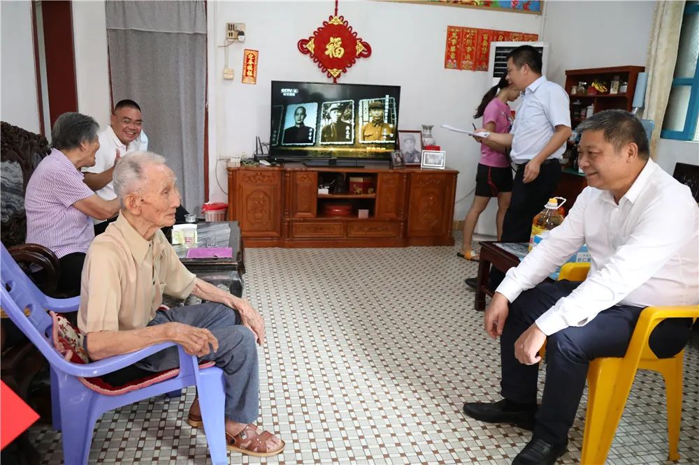 慰問組一行先后走訪了欖邊村茶東小組的烈士家屬鐘少青和茶西小組退役軍人黃勝明。高瑞生親切與他們敘家常、問冷暖,詳細(xì)詢問他們的生活近況、健康和子女就業(yè)等情況,感謝他們堅(jiān)守初心、為黨和國(guó)家事業(yè)所作出的無私奉獻(xiàn),并叮囑優(yōu)撫對(duì)象們保重身體、安度晚年。