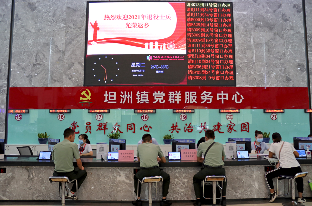 進(jìn)入9月份,坦洲鎮(zhèn)陸續(xù)迎來返鄉(xiāng)報(bào)到的2021年秋季退役士兵。為進(jìn)一步提升服務(wù)水平,切實(shí)讓返鄉(xiāng)退役士兵感受到家鄉(xiāng)的溫暖和社會(huì)的尊崇,坦洲鎮(zhèn)公共服務(wù)辦公室、退役軍人服務(wù)中心聯(lián)合鎮(zhèn)人民武裝部、公安分局、人社分局等部門,提前謀劃、精心組織,想退役士兵之所想,急退役士兵之所急,竭誠(chéng)為戰(zhàn)友們提供溫馨便捷的“一站式”服務(wù)。