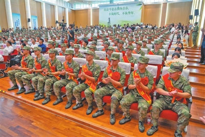 身著迷彩服,佩戴光榮花,一張張青春臉龐上滿是憧憬之情。金秋九月,中山又一批有志青年背上行囊,意氣風發(fā)奔赴軍營。 今年下半年,全市共有3000多名適齡青年報名應征,經(jīng)過體檢、政治考核、役前教育等層層選拔,共征集了300多名男兵,在讀大學生征集比例、大學畢業(yè)生征集比例再創(chuàng)歷史新高,圓滿完成了上級賦予的任務。 “希望你們不管在何處服役,是哪個兵種,都銘記父老鄉(xiāng)親的殷殷囑托,在部隊大力弘揚中山‘敢想敢闖、敢為人先’的精神,展示出‘中山兵’的良好精神風貌,沖鋒在前、勇?lián)笕?、奮斗奉獻,努力為中山增光添彩。祝新戰(zhàn)友們一路順風,刻苦訓練,能打勝仗,捷報頻傳!”在出席中山2023年下半年新兵歡送儀式時,中山市征兵工作領導小組副組長、中山軍分區(qū)大校司令員李云濤鄭重地說。 來自三鄉(xiāng)鎮(zhèn)的新兵代表馮林研究生畢業(yè)于青島農(nóng)業(yè)大學,他鄭重承諾:“到部隊后我們一定牢記使命,安心服役、刻苦訓練、嚴守紀律、積極進取,為祖國和平安寧扛好槍、站好崗,不辜負國家和家鄉(xiāng)人民的期望!” 敲鑼打鼓,列隊歡迎。一場歡送儀式,就是一次生動的國防教育。歡送儀式上,除了以東鳳鎮(zhèn)新兵張學培家庭“三代從軍”事跡為背景創(chuàng)作的原創(chuàng)詩歌朗誦《致敬夢想的接力》、男聲四重唱《強軍戰(zhàn)歌》等文藝表演,新兵還展示了軍體拳,動作干凈利落整齊,儼然已有軍人的模樣。現(xiàn)場,省級非物質(zhì)文化遺產(chǎn)起灣金龍展演也來助陣,只見金龍起舞、鑼鼓喧天,熱鬧非凡。 兒行千里母擔憂,歡送現(xiàn)場,不少家長熱淚盈眶,拿起手機記錄著孩子入伍的珍貴畫面,送兵車緩緩啟動,家長們的目光卻始終不肯轉(zhuǎn)移。一路跟隨,久久不肯離去…… 登上大巴車,新兵們揮一揮手:“再見,中山!軍營,我來啦!” 記者 黃藝杰 張倩 通訊員 黃嘉裕 圖編 文智誠 ◆編輯:龍慧◆二審:蘇鵬蘊◆三審:周亞平 |