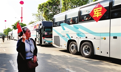 ▲家長(zhǎng)手舉國旗,一路目送孩子開啟新的軍旅生涯。 記者 文波 攝
