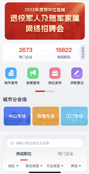 ▲掃碼進入2022年度珠中江區(qū)域退役軍人及隨軍家屬網(wǎng)絡(luò)招聘會。