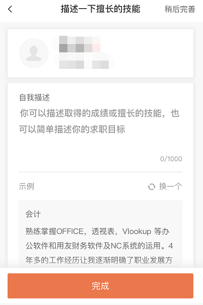 2、注冊賬號 未注冊登陸的求職者將自動跳轉(zhuǎn)到注冊頁面,完善相關(guān)信息后點擊【完成】按鈕完成注冊流程。