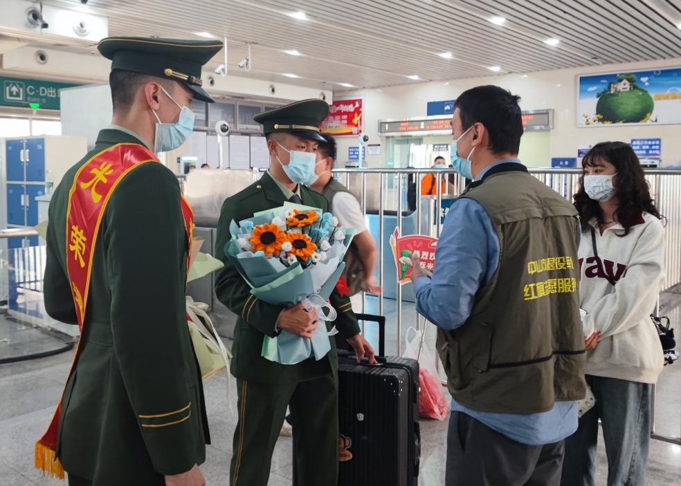 3月1日,中山市坦洲鎮(zhèn)退役軍人服務(wù)中心工作人員會同退役士兵家屬前往珠海明珠站迎接中山市2023年首批春季退役士兵平安返鄉(xiāng)。在車站出口,工作人員為退役士兵獻上鮮花,退役士兵與家人深情相擁,“最可愛的人”返鄉(xiāng)第一時間就感受到了來自家鄉(xiāng)及親人的貼心服務(wù)和溫暖。