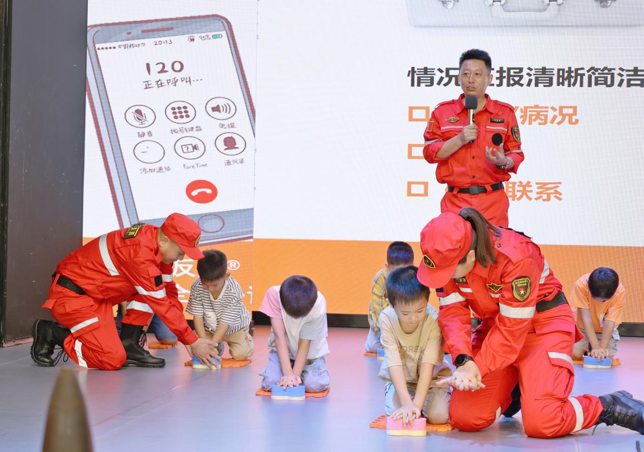 中山市擁軍支前紅旗服務(wù)隊(duì)隊(duì)長孫宏寧通過安全教育宣傳片、實(shí)際案例、情景模擬、互動(dòng)問答等形式,從應(yīng)急救護(hù)、如何進(jìn)行心肺復(fù)蘇、120呼叫需要提何種信息等與青少年生活息息相關(guān)的內(nèi)容為小營友們講授暑期“安全第一課”,讓安全意識(shí)、安全技能深入到在場每位學(xué)生、每個(gè)家庭,希望小營友們?cè)诳鞓愤^暑假的同時(shí)安全不“放假”。  國防教育現(xiàn)場。