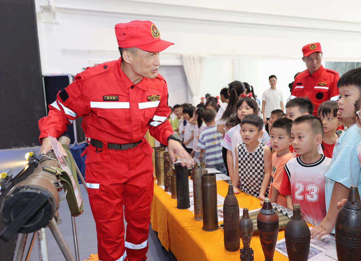 7月24日上午,中山市擁軍支前紅旗服務(wù)隊(duì)在南區(qū)街道環(huán)城社區(qū)暑期公益夏令營開營儀式上開展安全教育及國防教育,現(xiàn)場共吸引70余名社區(qū)兒童、家長以及志愿者參與。  暑期“安全第一課”。