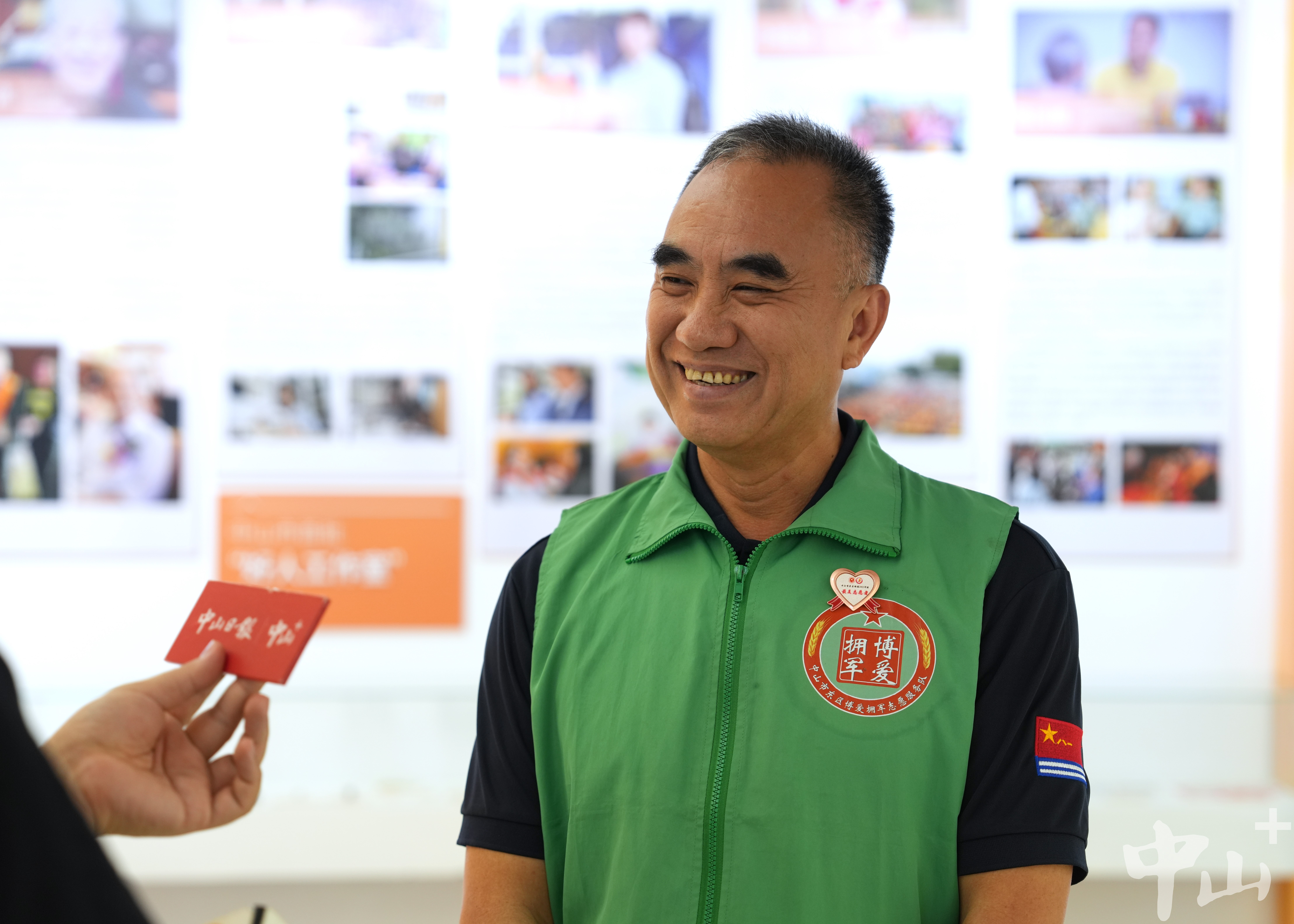 作為一名退伍軍人,李克有很多曾一起在戰(zhàn)場上出生入死的戰(zhàn)友,其中不乏已經(jīng)為國捐軀的烈士。自2007年起,他便自發(fā)組織尋找犧牲的中山籍戰(zhàn)友,先后6次帶隊前往廣西邊境的多個烈士陵園,成功尋到29名犧牲戰(zhàn)友信息,并將相關(guān)信息報送給中山市退役軍人事務(wù)局。 “我有一位戰(zhàn)友,寧愿把生的希望留給其他人,19歲不到就犧牲在戰(zhàn)場上。他們已經(jīng)離我們而去,更重要的是我們能為他們做些什么。所以逢年過節(jié)我都會看望他們的家人,把歡樂也帶給老人家。”李克說。 2016年,得知戰(zhàn)友的女兒患先天性心臟病,須進行心肺聯(lián)合移植手術(shù),李克立即帶頭捐款,并聯(lián)系政府相關(guān)部門和電視臺,通過媒體報道讓更多愛心人士關(guān)注到了這位困難老兵。在他的多方奔走下,社會各界紛紛伸出援助之手,募集醫(yī)藥費40余萬元,助戰(zhàn)友的女兒順利完成了手術(shù)。 牽頭成立志愿服務(wù)隊 延續(xù)志愿精神 作為一名有著30多年志愿服務(wù)經(jīng)歷的資深志愿者,李克的生活已經(jīng)與志愿分不開。他的身上始終有一抹綠色:在軍營,是守衛(wèi)國門的綠軍裝;在社區(qū),是服務(wù)群眾的綠馬甲。在人民群眾需要的地方,李克每次都沖在最前線。 “2020年疫情暴發(fā)時,很多人都響應(yīng)號召待在家里,我覺得作為一個打過仗的老兵,我總得站出來做點事。”沒有過多考慮,李克第一時間加入到了志愿者隊伍中,并在社區(qū)堅守了整整60天。當(dāng)時防護物資匱乏,李克還自掏腰包托人在廣州購買了6萬元左右的防護物資,全部捐贈給了在一線抗疫的工作人員。 近年來,李克還積極捐資助學(xué)、支援災(zāi)區(qū)、扶危濟困,連續(xù)6年資助6名困難學(xué)生,為汕尾市陸河中學(xué)捐贈10套多媒體電腦設(shè)備,堅持參與無償獻血直到60歲。 2018年起,李克擔(dān)任文明城市巡查監(jiān)督員,奔走在街道各個路口、每條小巷,整理亂停亂放的共享單車,清理“牛皮癬”小廣告,保障街頭巷尾干凈衛(wèi)生。同一年,為更有組織地開展志愿活動,李克牽頭成立了一支以退役軍人為主導(dǎo)的東區(qū)博愛擁軍志愿服務(wù)隊,把戰(zhàn)友們凝聚在一起,共同為社會作貢獻。如今,這支志愿服務(wù)隊已從最初的8名成員,逐漸壯大至400多人,成為服務(wù)社會的一支生力軍。 講好好人故事,傳承紅色文化 4月19日上午,記者在“中山好人館”見到了正在擔(dān)任“輪值館長”的李克。從去年1月開始,他每個月都參與輪值,先后為140多場活動、1萬多名市民群眾義務(wù)講解博愛之城的凡人善舉、好人大愛。  正在中山好人館輪值的李克。記者 劉萬杰 攝