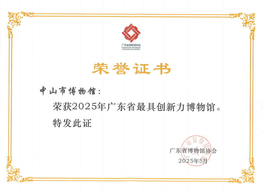 2025年5月,中山市博物館榮獲“廣東省最具創(chuàng)新力博物館”稱號。