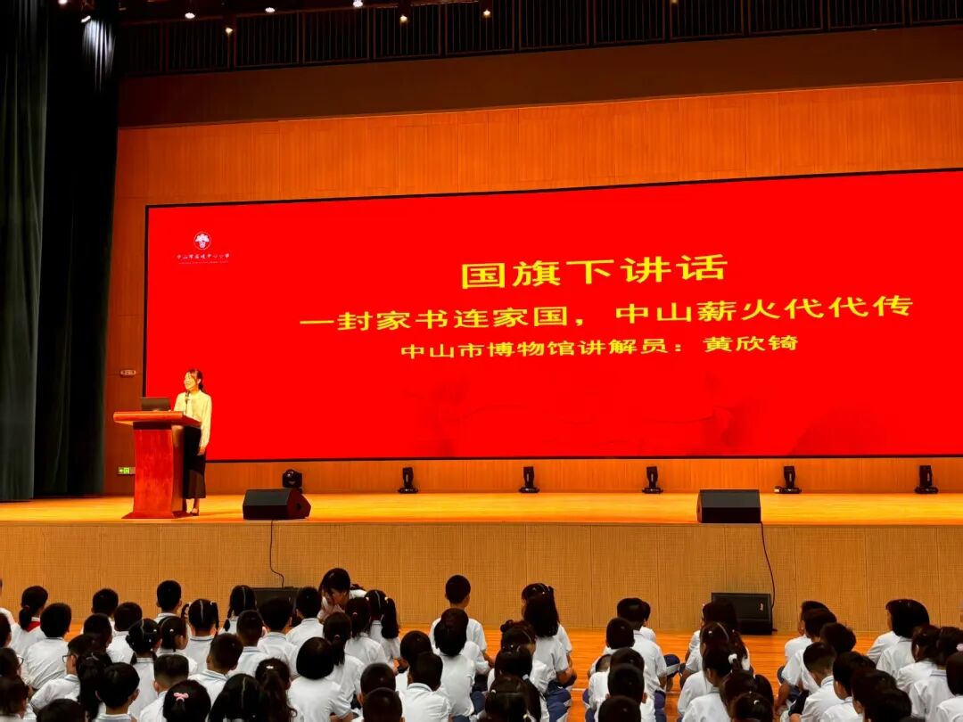 2025年9月1日,在新學年開學儀式上,中山市博物館金牌講解員進行“一封家書連家國”主題分享,將思政課堂融入校園,激發(fā)青少年的愛國情懷與文化認同。