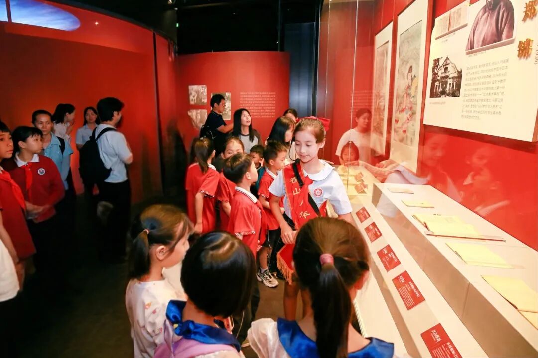 2025年5月17日,在“攜手筑夢 共‘向’未來”館校共建簽約儀式后,中山市博物館的紅領巾講解員們立即投入實踐,為觀眾講解香山文化名人展覽。