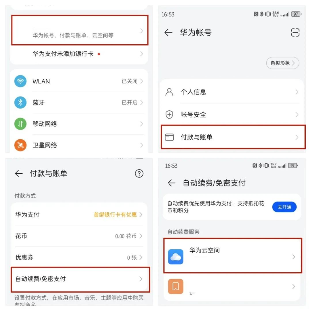 進入設(shè)置→華為賬號、付款與賬單、云空間等→付款與賬單→自動續(xù)費/免密支付→退訂App業(yè)務即可。