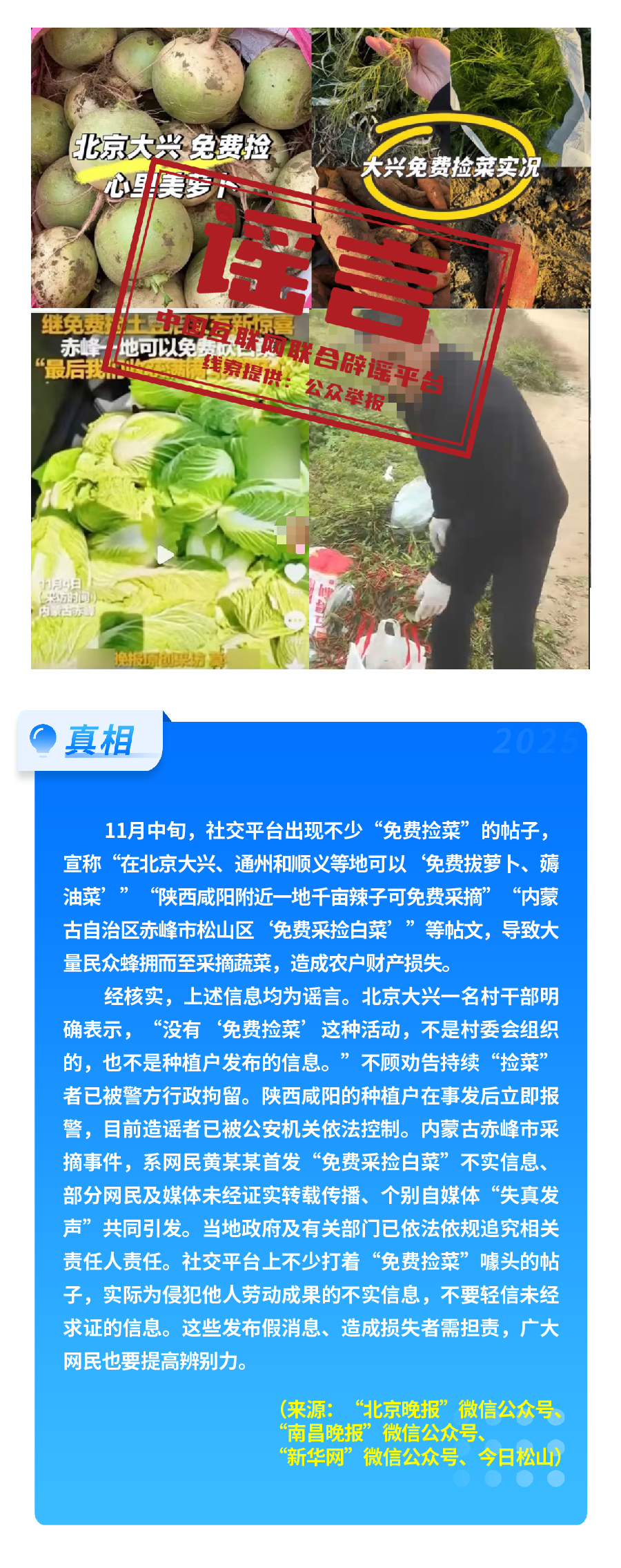 此外,“免費(fèi)撿菜”傳言在多地蔓延,北京大興、內(nèi)蒙古赤峰、陜西咸陽(yáng)等地,均有群眾因不實(shí)信息誤導(dǎo)涌入農(nóng)田哄搶,導(dǎo)致農(nóng)戶財(cái)產(chǎn)受損;“充‘劣質(zhì)電’會(huì)導(dǎo)致新能源汽車自燃”的說(shuō)法,毫無(wú)科學(xué)依據(jù),實(shí)為造謠者為博流量惡搞。另有“高見觀潮”“象視汽車”“987瘋狂奶爸”等賬號(hào)在多平臺(tái)編發(fā)涉汽車行業(yè)的虛假信息,惡意抹黑詆毀汽車企業(yè)、汽車產(chǎn)品,損害汽車行業(yè)發(fā)展形象。