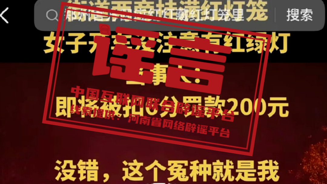 謠 言 鄭州街邊紅燈籠致“女司機(jī)”誤闖紅燈被罰?