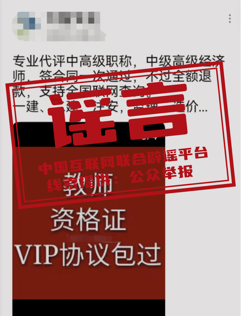 真相:近日,一些中介機構(gòu)發(fā)布信息稱可以提供“一站式”“一對一”“8000元免試評定”“專屬通道,不過保退”等“職稱代評代辦服務(wù)”,引發(fā)社會關(guān)注。對此,人力資源和社會保障部表示:此類網(wǎng)傳內(nèi)容均為詐騙信息。根據(jù)相關(guān)規(guī)定,申報人如果明知不符合職稱申報條件仍故意通過虛假承諾、偽造信息等手段進(jìn)行申報,或者提供虛假材料、論文造假代寫、剽竊他人作品或者學(xué)術(shù)成果,業(yè)績成果不實或者造假,存在說情打招呼、暗箱操作等不正當(dāng)行為,將被記入誠信檔案庫,記錄期限為3年;對申報材料真實性等承諾不實的,3年內(nèi)不得申報評審職稱;違規(guī)取得的職稱,一經(jīng)核實即由人力資源社會保障部門或者評審單位予以撤銷。情節(jié)嚴(yán)重涉嫌犯罪的,移送有關(guān)機關(guān)依法處理。(來源:“人力資源和社會保障部”微信公眾號)