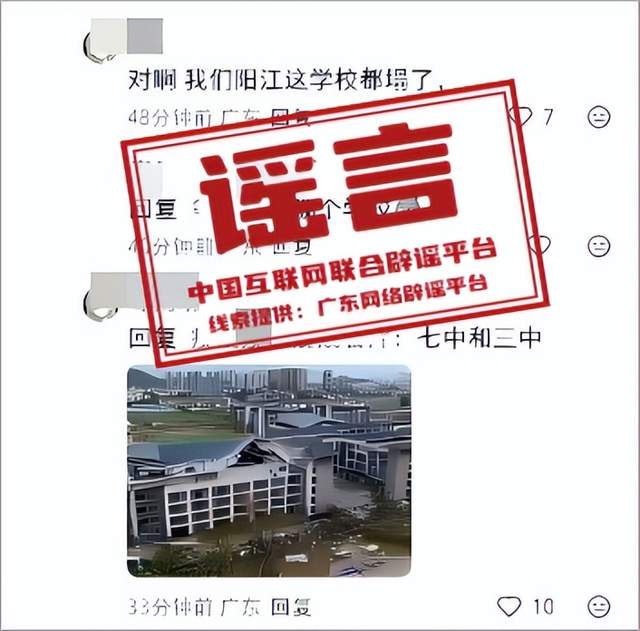 謠言:廣東陽江兩所中學(xué)教學(xué)樓因臺風(fēng)坍塌?
