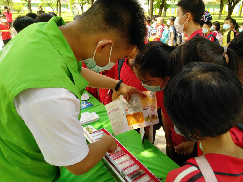 活動現(xiàn)場,擺設有仿真毒品模型、VR眼鏡的攤位吸引了眾多學生。社工熱情地向?qū)W生講解了毒品的危害和防范新型毒品的有關知識,呼吁同學們要遠離毒品,珍愛生命。