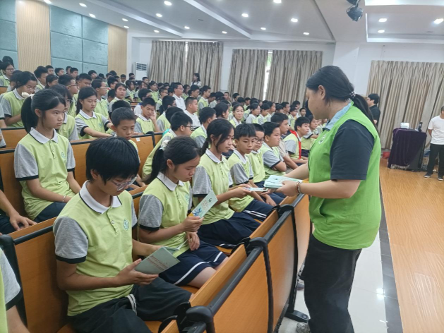 活動(dòng)過(guò)程中,公安人員通過(guò)PPT形式為學(xué)生們講解交通安全知識(shí),包括“交通法律法規(guī)”“違反交通規(guī)則的危害性”等,并播放了“鬼探頭”式交通事故警示教育片,讓學(xué)生們?cè)谏蠈W(xué)、放學(xué)途中要保持警惕心和細(xì)心,明白到遵守交通規(guī)則的重要性。期間,禁毒社工派發(fā)禁毒宣傳單張向?qū)W生們普及禁毒知識(shí),重點(diǎn)強(qiáng)調(diào)依托咪酯-上頭電子煙的危害性,教育引導(dǎo)學(xué)生們提高識(shí)毒、防毒、拒毒的意識(shí)和能力。