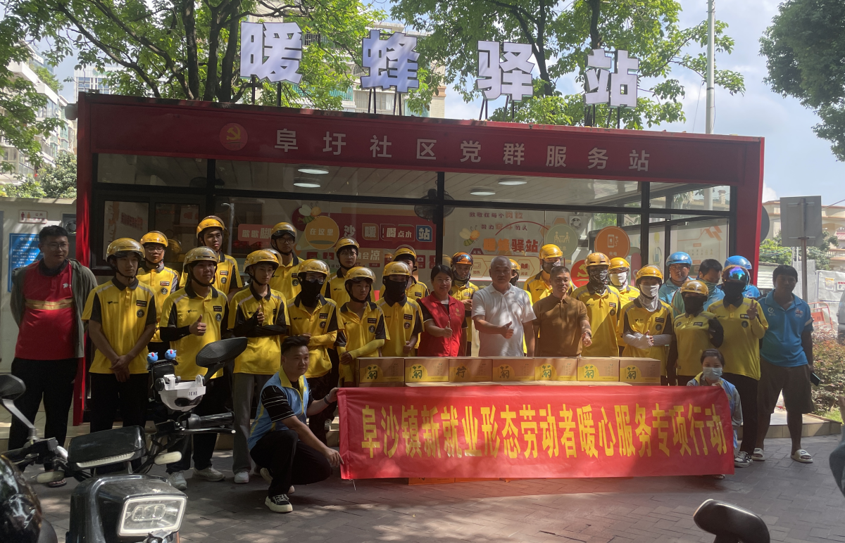 為進(jìn)一步提升新業(yè)態(tài)群體識(shí)毒、防毒意識(shí)與能力,8月13日上午,阜沙鎮(zhèn)平安法治辦聯(lián)合阜沙鎮(zhèn)總工會(huì)在阜圩社區(qū)暖蜂驛站開展新業(yè)態(tài)勞動(dòng)者暖心服務(wù)暨禁毒宣傳進(jìn)萬(wàn)家活動(dòng)。鎮(zhèn)人大主席梁元輝出席了本次活動(dòng),活動(dòng)共為60余名美團(tuán)、餓了么、京東騎手送上防暑物資與禁毒知識(shí)“雙料禮包”,并吸引了眾多居民群眾駐足觀看參與。
